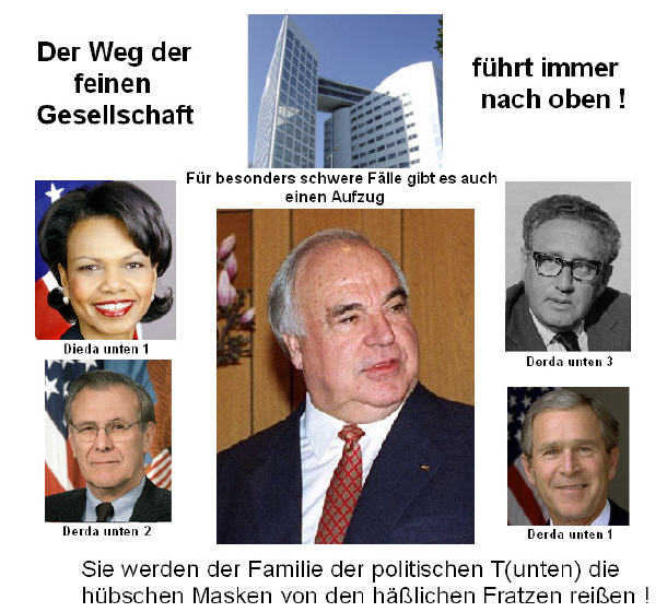 Bildquellen oben: http://commons.wikimedia.org/wiki/Image:Helmut_Kohl_1997.jpg Public Domain http://de.wikipedia.org/wiki/Bild:George-W-Bush.jpeg Public Domain http://de.wikipedia.org/wiki/Bild:Condoleezza_Rice.jpg Public Domain http://de.wikipedia.org/wiki/Bild:Henry_Kissinger.jpg Public Domain http://de.wikipedia.org/wiki/Bild:Building_of_the_International_Criminal_Court_in_The_Hague.jpg GNU Free Documentation Licence